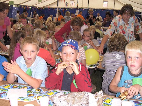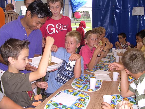 Veel vrijwilligers zijn druk bezig geweest met de pannenkoeken voor de kinderen.