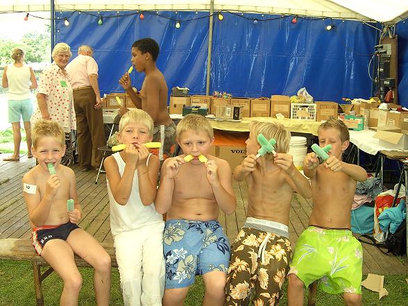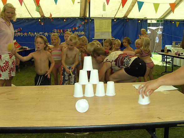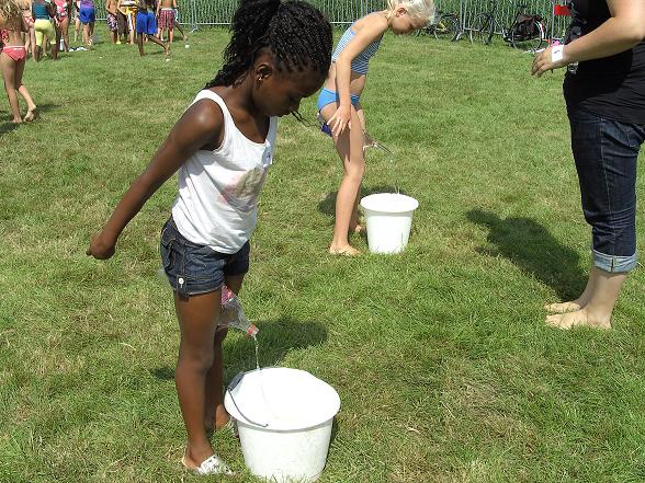 Vervolgens werden op vrijdag waterspelletjes gespeeld, op onderstaande foto's.