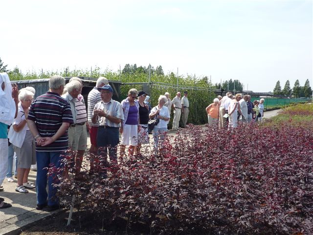 Na de lunch bracht de bus ons naar een moderne boom en heesterkwekerij waar we ook weer veel te horen en te zien kregen.Op de thuisreis deden we nog een heel mooi tuincentrum aan, maar de buitentemperatuur liep tegen de 30 graden, dus bij gebrek aan kooplust zocht men snel verkoeling in de bus en gingen richting Montfoort.