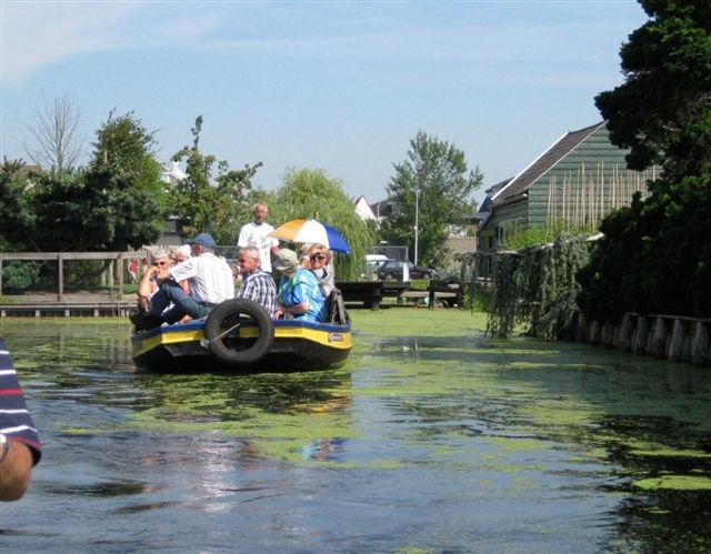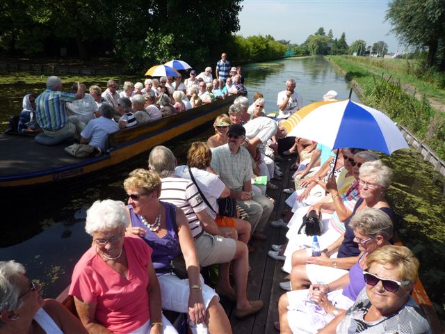 Daarna lagen twee boten gereed voor een rondvaart door de "Proeftuin van Holland". Met een stralend zonnetje en een verkoelend windje was het een heerlijke tocht langs de vele kwekerijen, waarover de gids ons veel wist te vertellen.