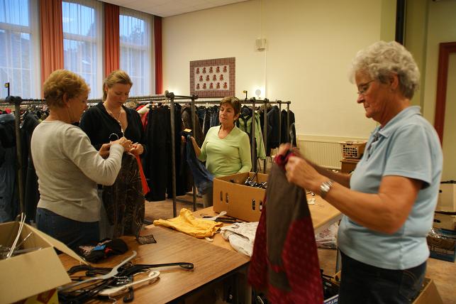 Dinsdag 15 september was het in De Wingerd een komen en gaan van met name moeders die tassen vol met kleding en speelgoed kwamen brengen.
