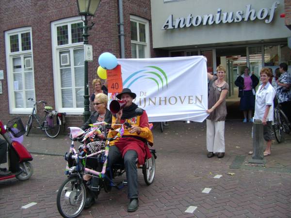 Op 24 september werden beide jubilarissen in het zonnetje gezet tijdens een receptie in Antoniushof, waar velen hen kwamen gelukwensen. Dini werd ‘s middags al op een versierde duofiets door collega’s en bewoners thuis opgehaald en met het nodige lawaai door de stad naar Antoniushof gereden.