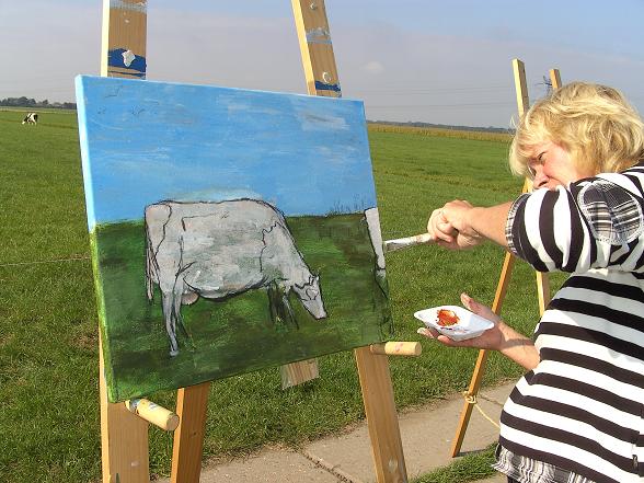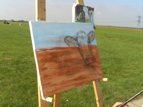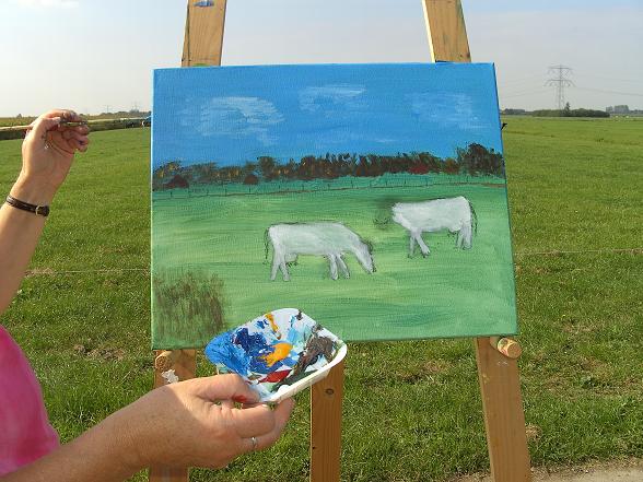 Niet alleen de koeien, maar ook het landschap is mooi om te schilderen.
