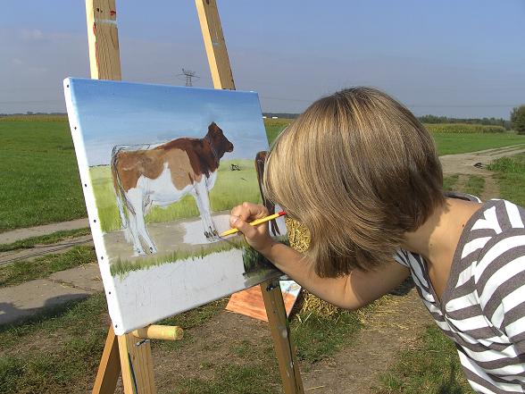Op de boerderij van de familie Kool in Linschoten, de Adrianahoeve, werd zaterdag 26 september een workshop koeschilderen georganiseerd.