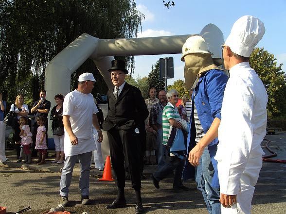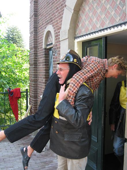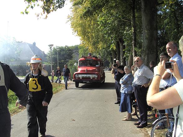 Op de Nieuwe Zandweg werd er een brand in scene gezet waarna er met oude blusvoertuigen werd uitgerukt. Onder toeziend oog van vele toeschouwers en met veel spektakel werden de slachtoffers in veiligheid gebracht.