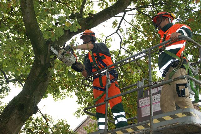 Op dinsdag 27 oktober waren de heren van de groenvoorziening druk bezig in Linschoten. Met een hoogwerker werden de bomen gesnoeid, de slechte bomen werden verwijderd.