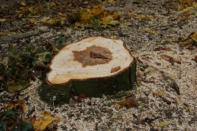 Hier en daar werden slechte bomen verwijderd zoals deze bij de parkeerplaats naast de Lindescote.