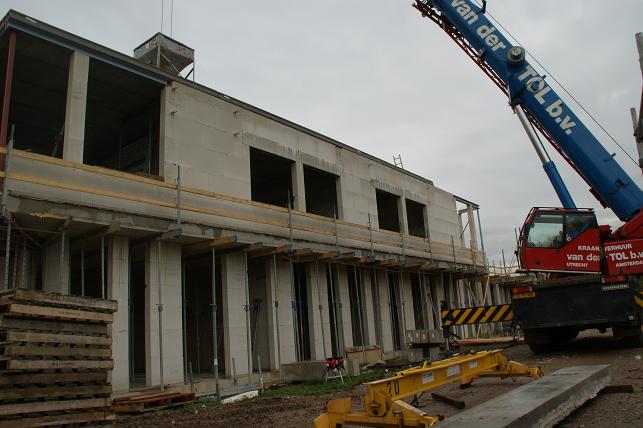 Het de bedoeling dat de buitenkant voor de kerst in ieder geval wind- en waterdicht wordt gemaakt zodat er ook binnen verder gewerkt kan worden.