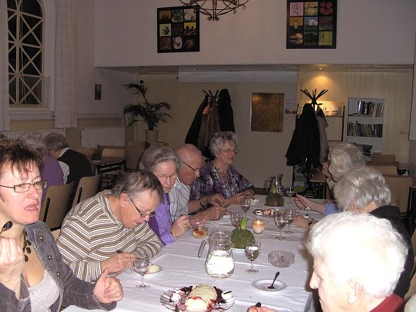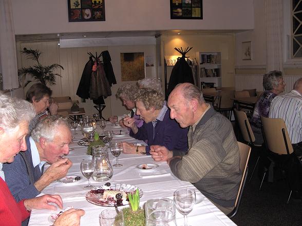 De vrijwilligers hadden de tafels mooi opgemaakt, en de kok van de Wulverhorst uit Oudewater zorgde voor een heerlijke maaltijd.