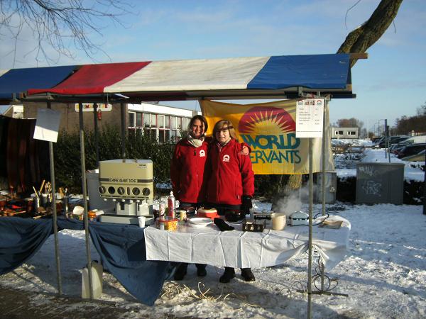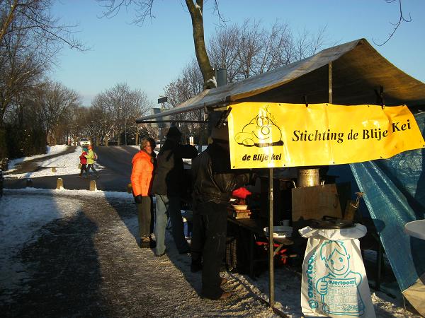 De toeschouwers kunnen zich opwarmen met de warme drank en oliebollen.