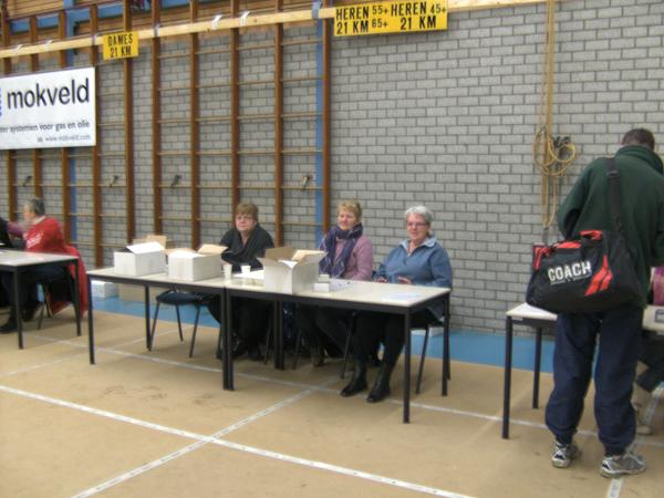 De dames zitten er klaar voor om de lopers in te schrijven.