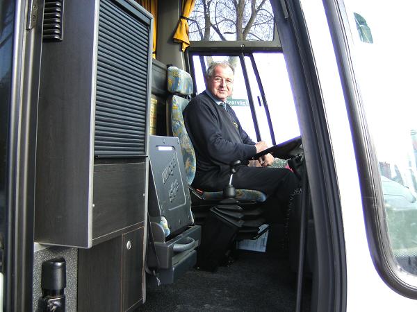 Buschauffeur Jan rijdt al diverse jaren de sporters naar de startlocatie.