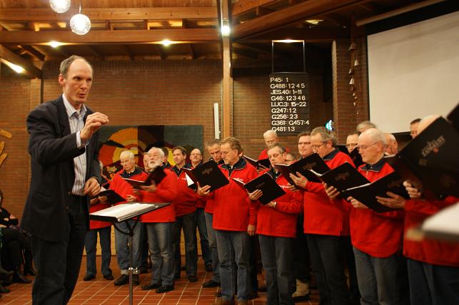 Het mannenkoor onder leiding van dirigent Rob Holleman.