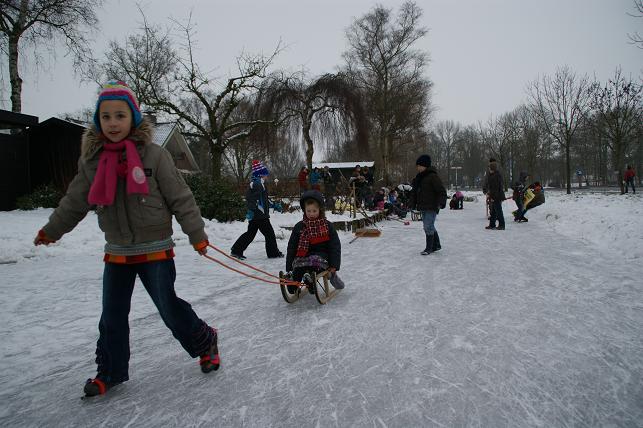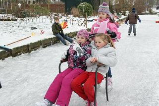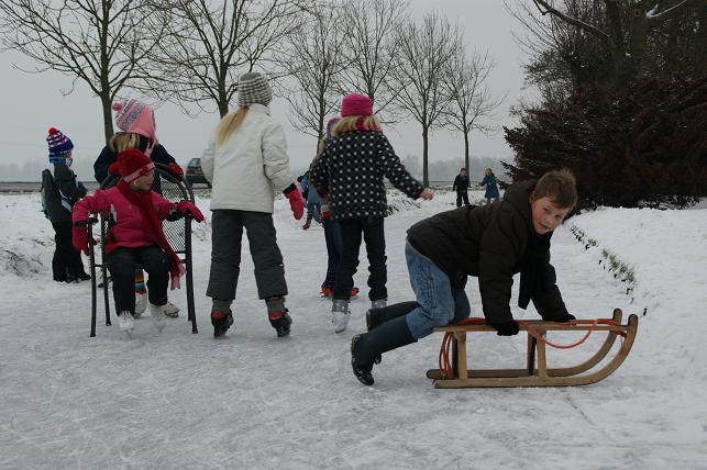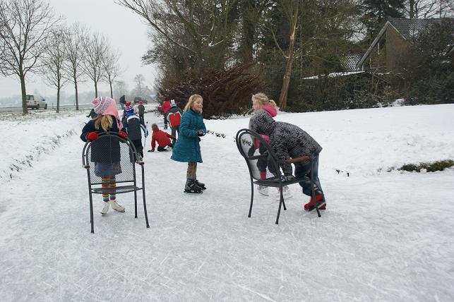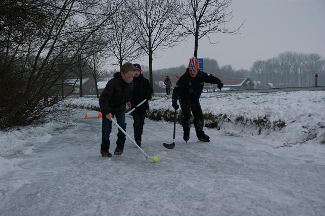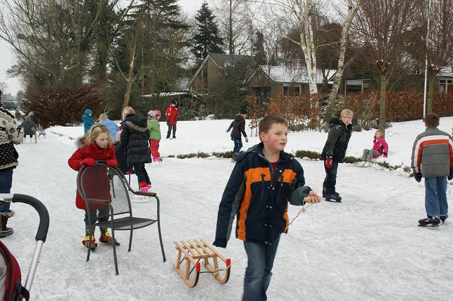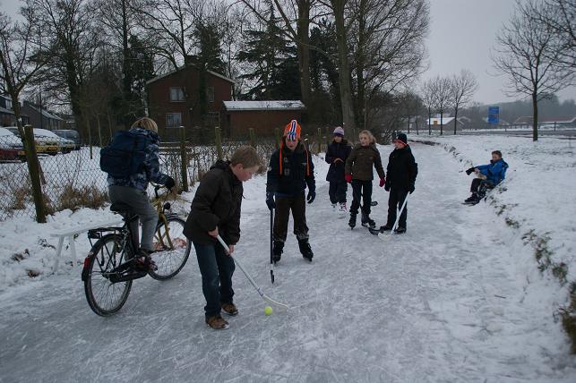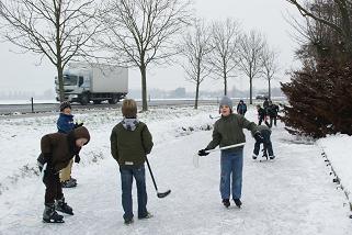 De kinderen leefden zich lekker uit met schaatsen, sleen of ijshockey op de sloot bij de Meidoornlaan. Het was prima ijs, mede door enkele buurtbewoners die elke dag het ijs schoon schuiven. Na het schaatsen kregen zij warme chocolademelk en iets lekkers.
