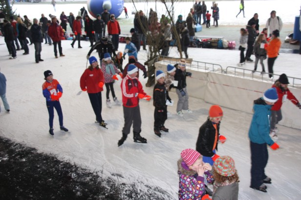 Op de schaatsbaan was een prachtig elfstedenparcours uitgezet. Helemaal compleet met stempelposten in alle elf steden, de brug van Bartlehiem, wakken, riet en kluunplaatsen.