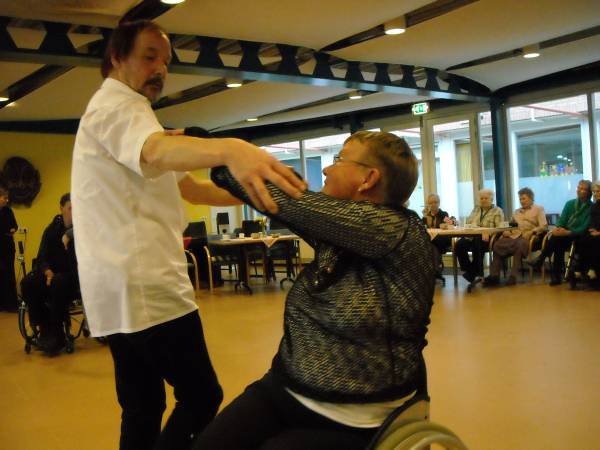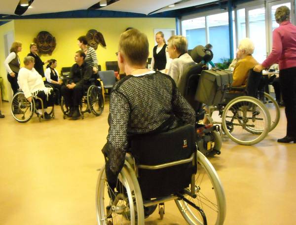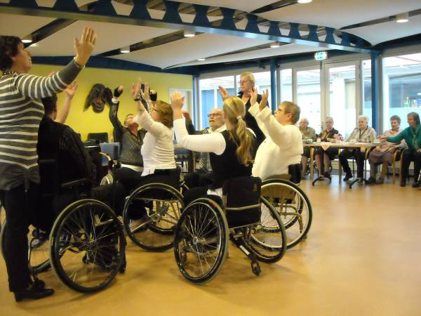 Stichting de Rijnhoven, locatie Antoniushof in Montfoort, organiseerde 22 januari weer een gezellige middag in de grote zaal van Antoniushof. Het optreden van de Swingende Wielen, die een demonstratie gaven van rolstoeldansen, was verrassend. Vooral toen een van de rolstoeldansers uit zijn stoel opstond en op eigen benen verder ging… Het was echter geen “wonder.” Er worden vaker valide mensen gevraagd om mee te doen.