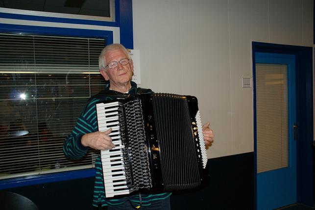 Dhr. Severs zorgde voor een vrolijke noot bij binnenkomst  van de gasten.