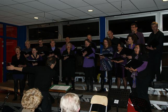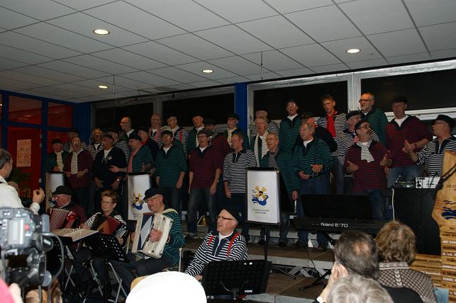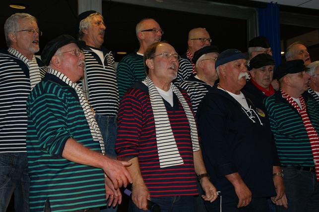 In de aula van het Wellantcollege brachten De IJsselzangers menig zeemanslied ten gehore, op hun uitnodiging waren er nog drie deelnemende koren aanwezig: