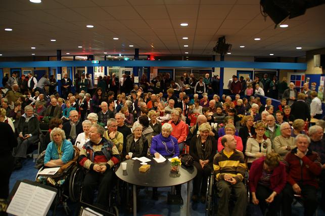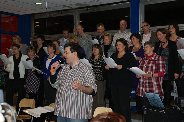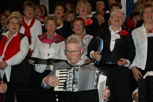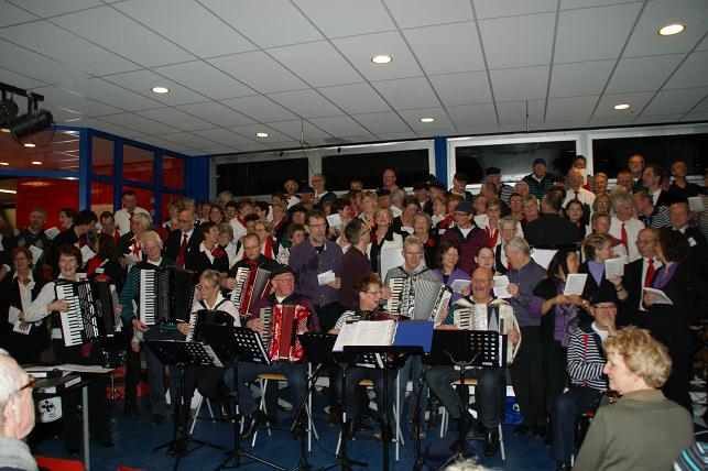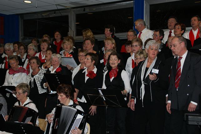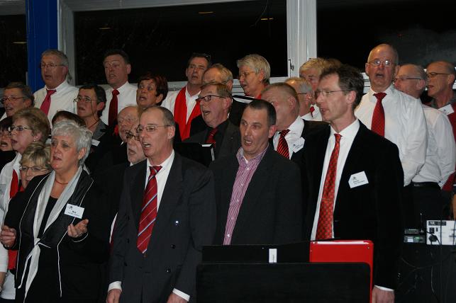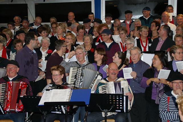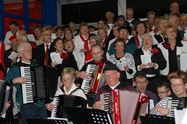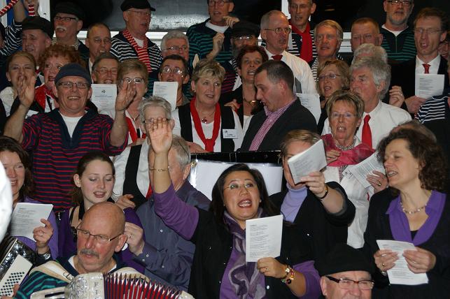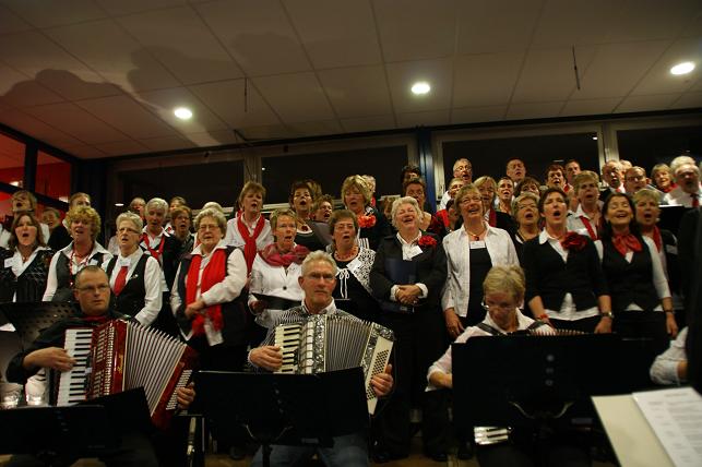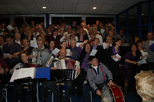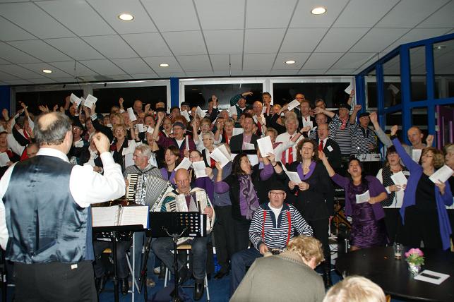 Aan het eind van de avond volgde er een gezamenlijk optreden met alle koren. Het publiek zong uit volle borst mee en de polonaise werd ingezet.