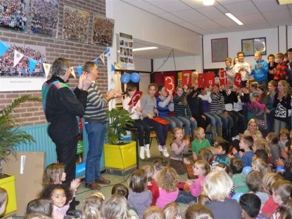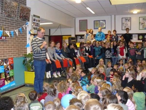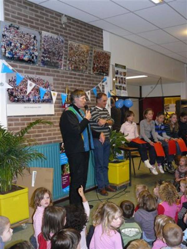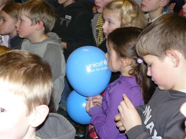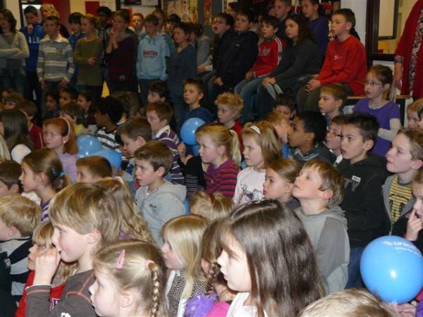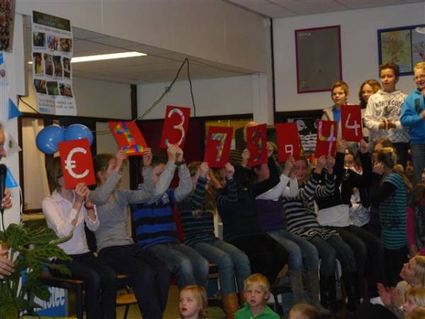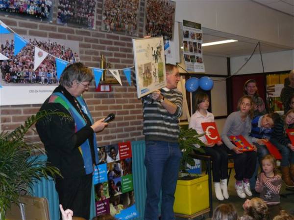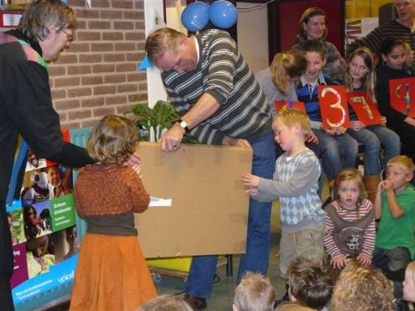 In december op de kerstmarkt hebben leerlingen van de Hobbitstee een actie gehouden voor Unicef. Dinsdag 2 februari kwam mevrouw Mirjam Klaarenbeek, vrijwilliger van Unicef, het bedrag officieel ophalen. Het mooie bedrag van € 1379,44 wordt mede gebruikt voor de ramp in Haïti.