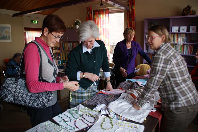 Deze dag vond er een verkoping plaats, allemaal zelfgemaakte spulletjes zoals kettingen, schilderijen, wollen sokken, knuffels, geborduurde kleedjes, gemaakt door diverse mensen o.a. bewoners van De Lindescote.
