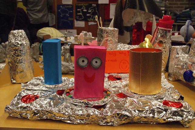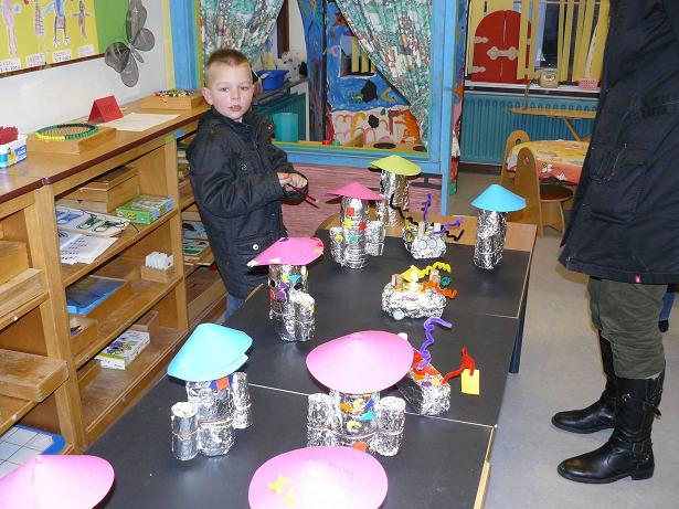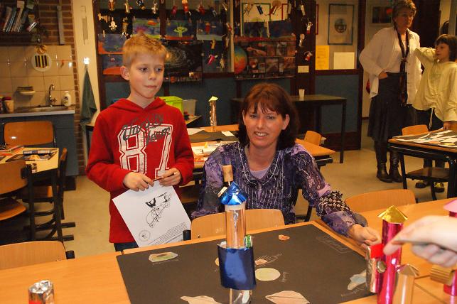 De leerlingen vermaakten zich prima met de vele activiteiten, en de creaties van de medeleerlingen zoals deze raket hieronder.
