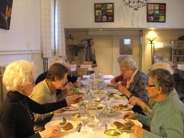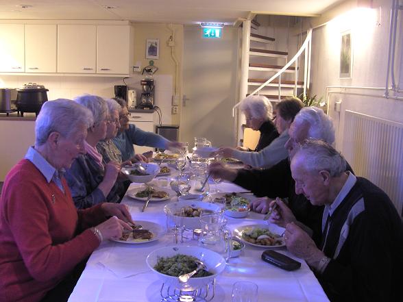 Door de geweldige inzet van de vrijwilligers werd er deze avond weer allerlei lekkers voorgeschoteld zoals: kerriesoep, schnitzel, gebakken aardappels, snijbonen, sla, en advocaatpudding met saus én slagroom.