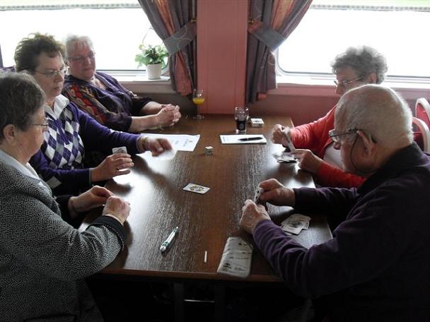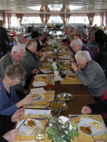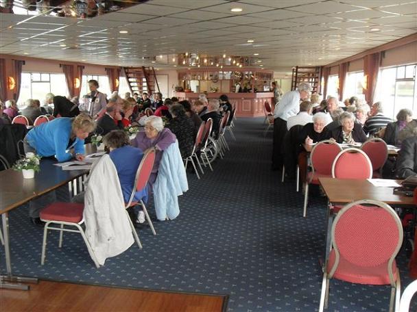 Onderweg konden de gasten kaarten, rummikuppen een rondje BINGO. Ook is de inwendige mens heerlijk verzorgd met koffie, een borrel en lunch. De vrijwilligers hebben zich goed ingezet door aandacht en hulp.