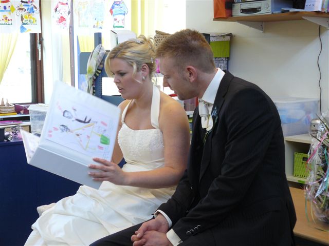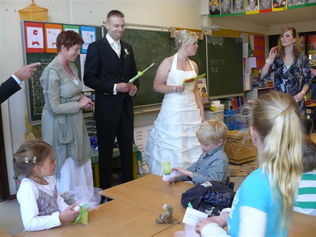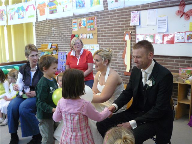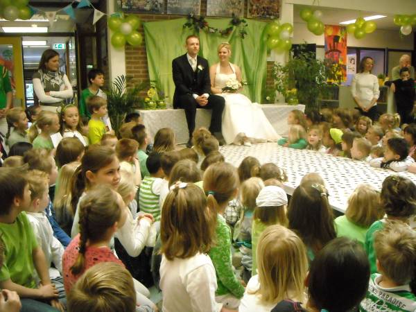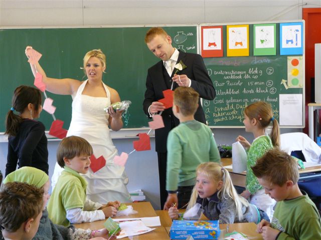 het bruidspaar bezocht ook de klassen in de Hobbitstee. Rita Verheij stuurde de volgende foto's: