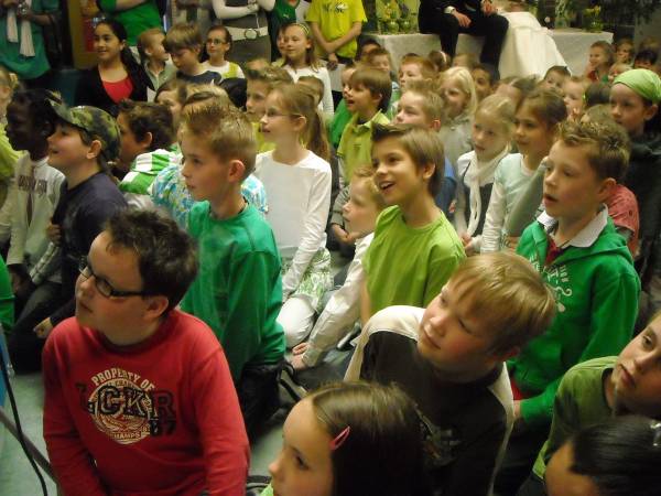 In de school verzamelde de kleuters van haar groep zich om  de catwalk met erezetel, en werd een prachtig lied voor hen gezongen. Een mooie filmpresentatie gaf de mening weer van de leerlingen over “Het Huwelijk.”