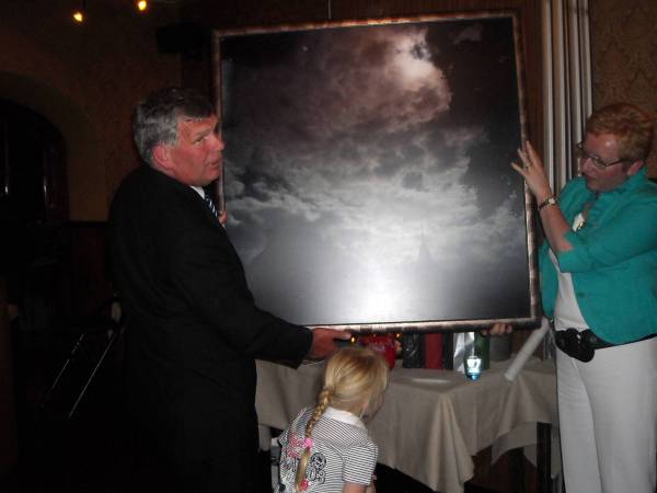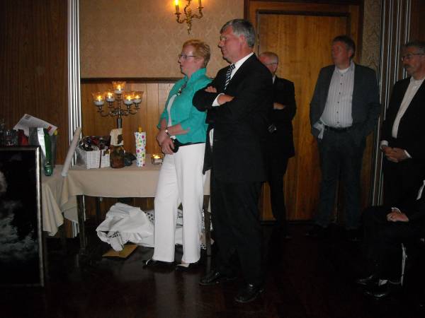 Vele (oud)politici, vertegenwoordigers van verenigingen en onderwijs, kwamen hem de hand reiken bij de afscheidsreceptie die de gemeente voor hem had georganiseerd.  De “te nuttigen” cadeaus vulden de tafel, maar het mooiste cadeau kreeg hij wellicht door burgemeester Jansen aangereikt: een unieke, ingelijste foto op linnen van de zonsverduistering in 1998, gemaakt door fotograaf Jan de Kruijf.