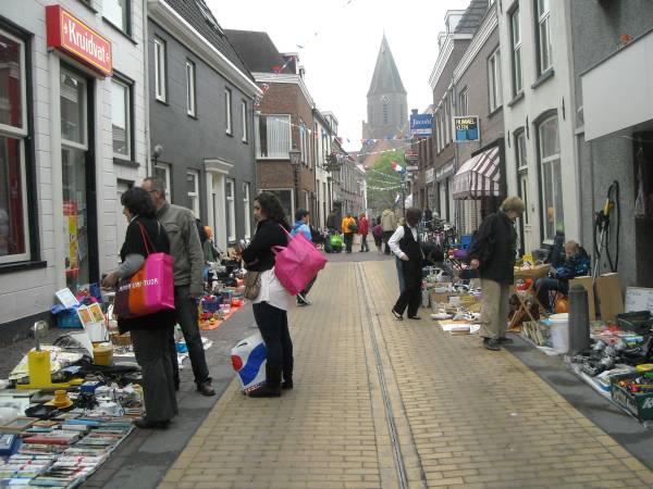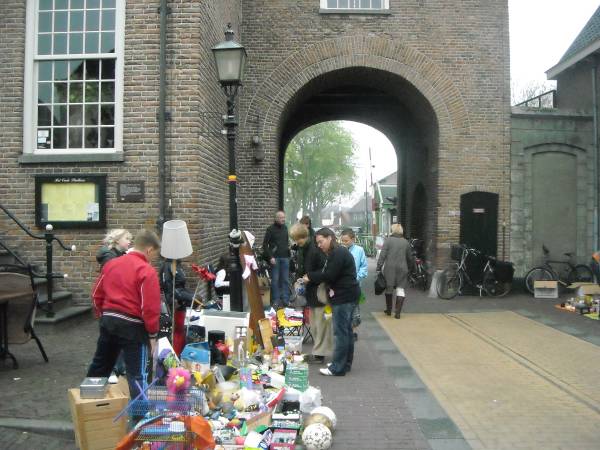 In Montfoort waren de straten tegen acht uur ‘s morgens al gevuld met de meest uitlopende artikelen, uitgestald op kleedjes. Verkopers nodigden voorbijgangers met  veel enthousiasme uit om, voor een klein prijsje, iets moois aan te schaffen.