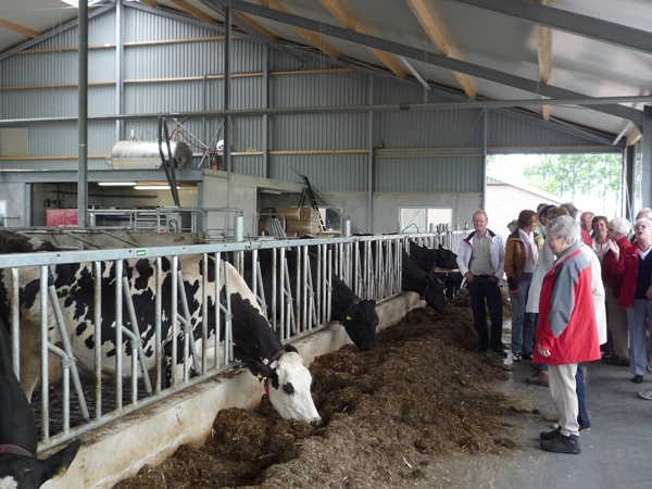 Daarna ging de groep, bestaande uit 30 personen, op bezoek bij Doruvael. Ad, Ans en Jirco Vlooswijk hebben daar een zeer modern en vol geautomatiseerd melkveebedrijf en kaasmakerij, met daarbij een Landwinkel.