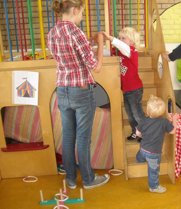 Enthousiast wierpen peuters en kleuters zich in het spelcircuit, lieten zich schminken of kappen, gingen schatgraven in de zandbak en leefden zich uit op het springkussen.