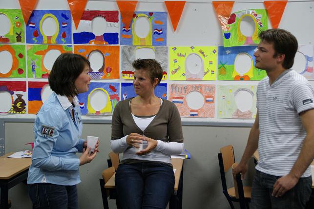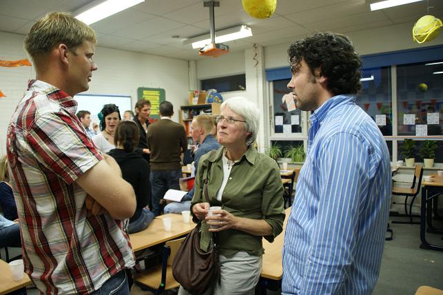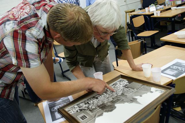 Op bovenstaande foto de organisatoren Rutger (links) en Michel (in het midden). Na een korte ontvangst volgde er een mooie presentatie met fotos van vroeger en nu, de oud-leerlingen gaven hierbij een toelichting over hun leven na de basisschooltijd.