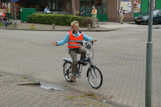 Na twee bochten gemaakt te hebben moesten zij afstappen om vervolgens lopend het zebrapad over te steken. Ondanks de opvallende oranje hesjes die zij aanhadden, en de hulpouders op iedere hoek van het kruispunt (ook met oranje hesjes) vonden zeer veel automobilisten het niet nodig om voorrang te verlenen bij het zebrapad. De school en hulpouders vinden het dan ook een erg druk en gevaarlijk kruispunt voor de kinderen, en zouden graag zien dat op deze plaats de verkeersveiligheid wordt verbeterd.
