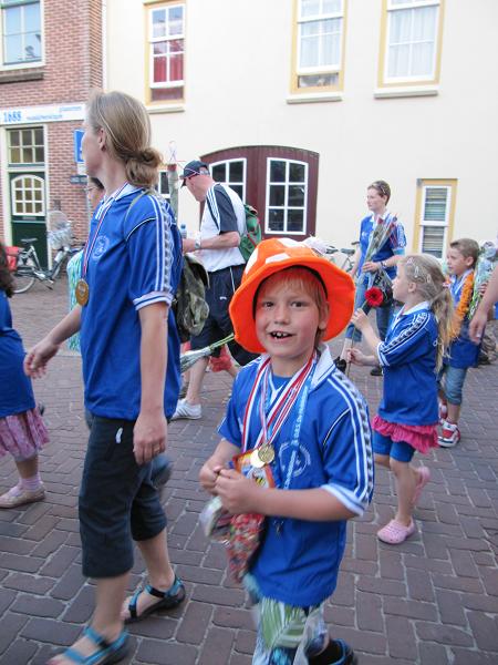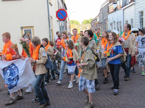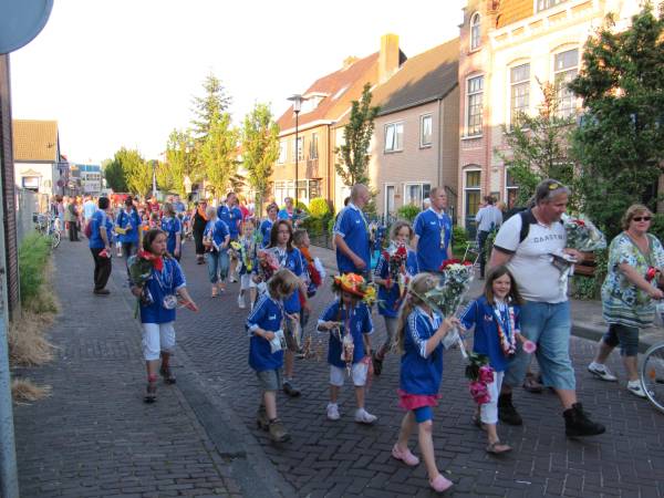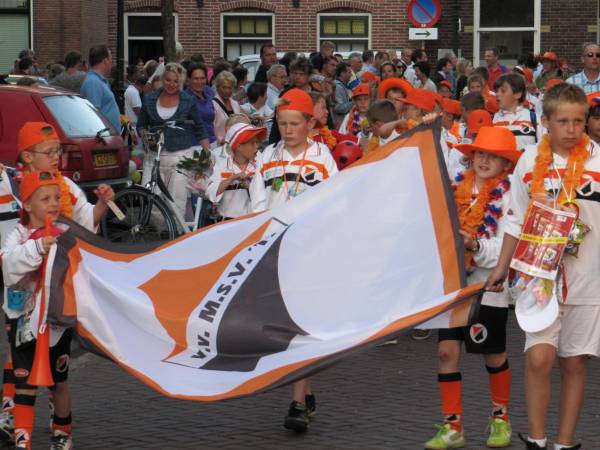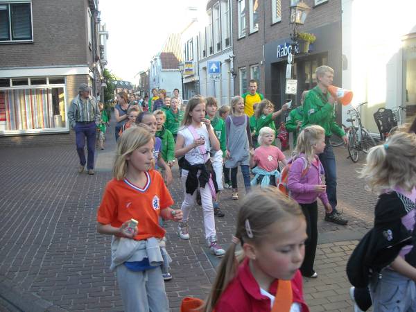 Heel Montfoort leek vrijdagavond uitgelopen om het defilé van de avondvierdaagse te zien langs trekken. Langs de hele route stonden enkele duizenden mensen om alle deelnemers te huldigen. Het was een prachtige stoet waarbij de kleur oranje van de attributen (dit natuurlijk met het oog op het komende WK) verreweg de boventoon voerde. Ondanks de oproep van het organiserende comité om bloemen en niet teveel snoep te geven, hadden de meeste kinderen toch wel een zakje snoep om de nek hangen.