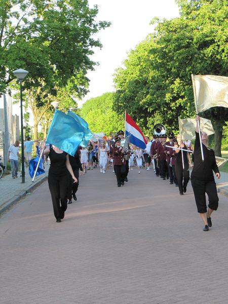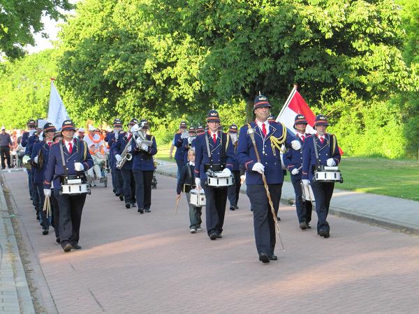 De stoet werd muzikaal begeleid door de korpsen Linfano uit Linschoten en Ons Genoegen uit Montfoort. Het was een prachtige afsluiting van vier avonden wandelen onder ideale omstandigheden. Na afloop ging iedereen moe maar voldaan met een dik verdiende medaille naar huis.