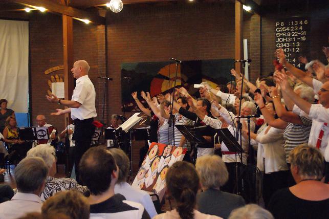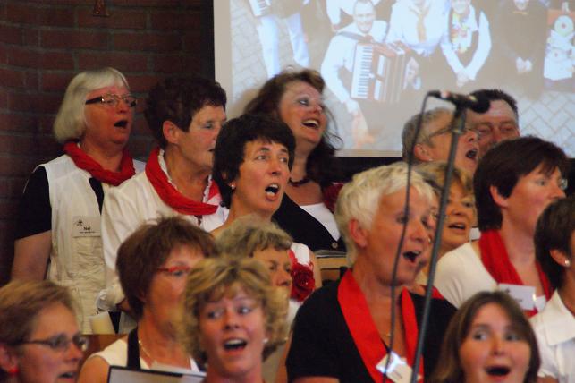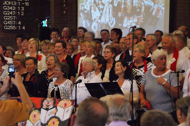 Daar werd goed gehoor aan gegeven, want iedereen zong uit volle borst mee.