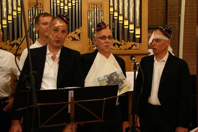 De broers van Eck brachten op een originele manier het lied ‘’t Autootje’ ten gehore. De één met een stuk verband om zijn hoofd, en de anderen met een foto en een stuur van het 't autootje in de hand. Een geweldige act!
