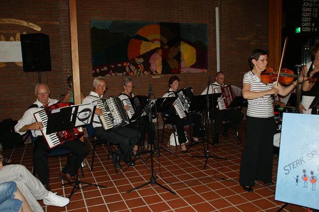 De koorleden werden muzikaal ondersteund door vijf accordeonisten, een slagwerker en een violiste.