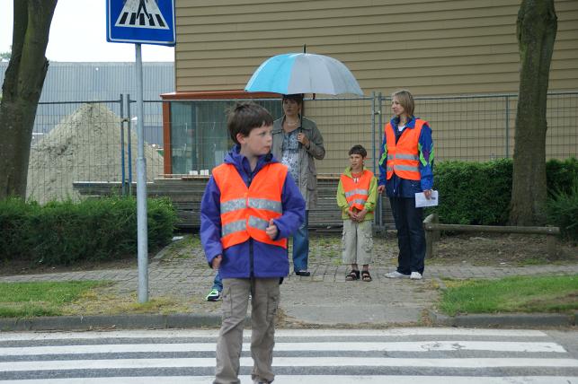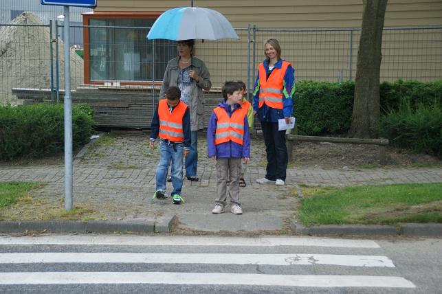 Er werd geoefend op de Laan van Rapijnen, op een gedeelte met en zonder zebrapad. Veel kinderen deden hun best en keken goed uit bij het oversteken.