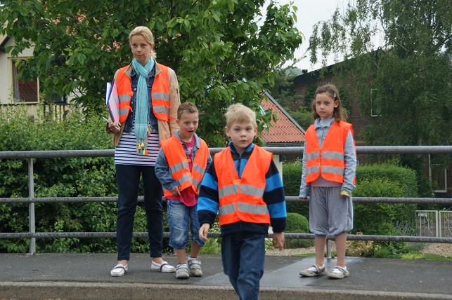 Na een korte uitleg op school gingen zij in kleine groepjes op pad. Tijdens deze praktijkles werd er gelet op het gedrag bij het oversteken.