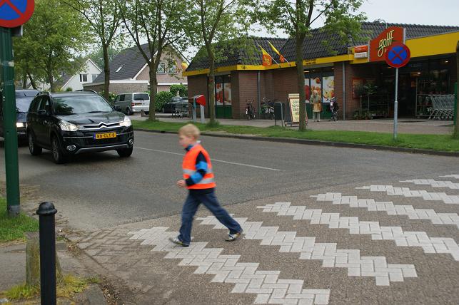 De meeste automobilisten stopten netjes voor het zebrapad, een enkeling reed toch door.