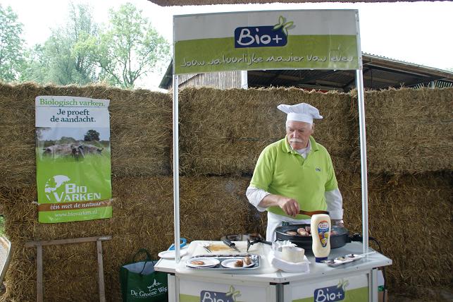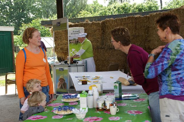 Op de Adrianahoeve, de boerderij van de familie Kool in Linschoten, konden de bezoekers een kijkje nemen bij de diverse kraampjes met o.a. informatie over biologische producten, deelnemen aan een biologische zuivel- en vleesproeverij of lekkere boerenwafels eten.