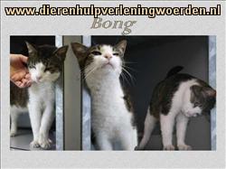 Bong is een gecastreerde kater van ongeveer 13 jaar. Er zijn een aantal dingen die je moet weten; zo heeft hij elke dag een tabletje nodig, want zijn hart heeft zoveel liefde te geven dat er wat ondersteuning nodig is.