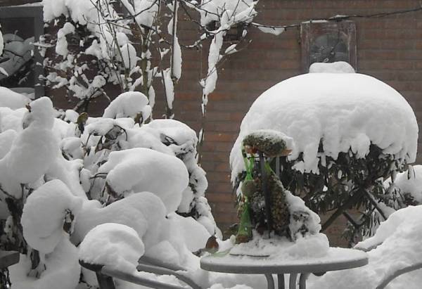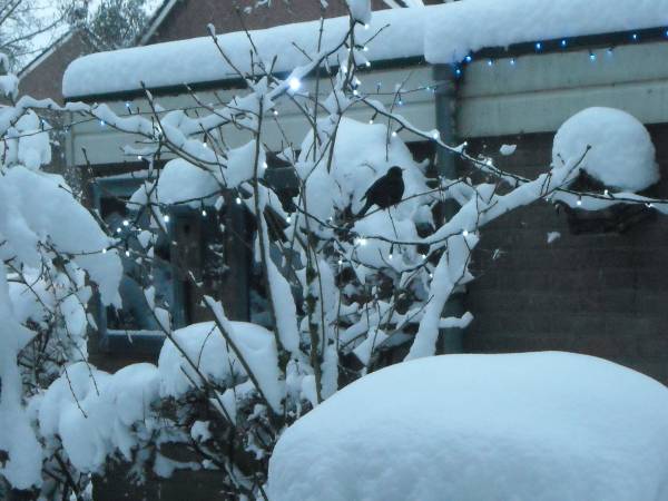 Insecten zijn weggekropen, bessen zijn op of moeilijk bereikbaar door de sneeuw. Van bijvoeren in de tuin wordt dan ook graag gebruik gemaakt.