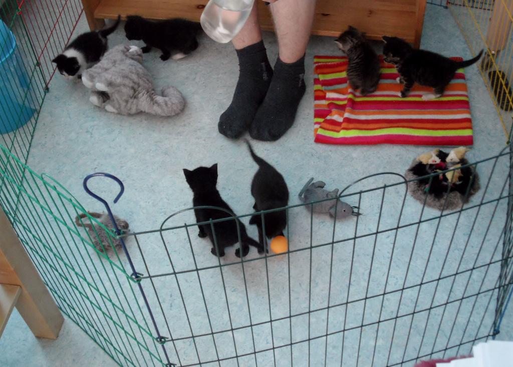 Voor de desbetreffende vrijwilligers is het een periode van hard werken. De moederloze kittens zijn afhankelijk van de fles. De vrijwilligers zijn dan ook 24 uur per dag in touw om de kleine katjes een zo goed mogelijke start te geven. De hele kleintjes worden om de 2 uur gevoed met de fles, ook tijdens de nacht.