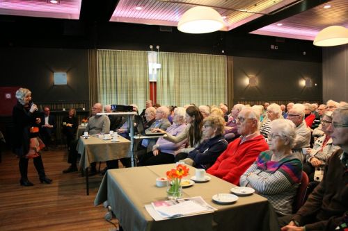 Zo’n 135 senioren keken woensdag 26 februari verwachtingsvol naar dagvoorzitter Robert Barendse (Kamer van Koophandel te Utrecht). Ze zaten op het puntje van hun stoel bij de presentatie van Betsy de Keizer en participeerden met interesse in de paneldiscussie. Daarin zijn ondernemers ingegaan op vragen over technologische ondersteuning, de toepassing van domotica, het wegnemen van drempels et cetera. “Wij zien een groeiende behoefte aan domotica en technologische hulpmiddelen”, aldus Nicoline Valk, adviseur zorgdomotica bij Van den Pol. “Wij bieden senioren en hun families een gevoel van zekerheid en veiligheid, gericht op blijvende zelfredzaamheid in de toekomst. Deze tendens, die zowel vanuit de overheid als vanuit de maatschappelijke omgeving is ontstaan, sluit feilloos aan bij de zorgoplossingen die Van den Pol kan bieden.”