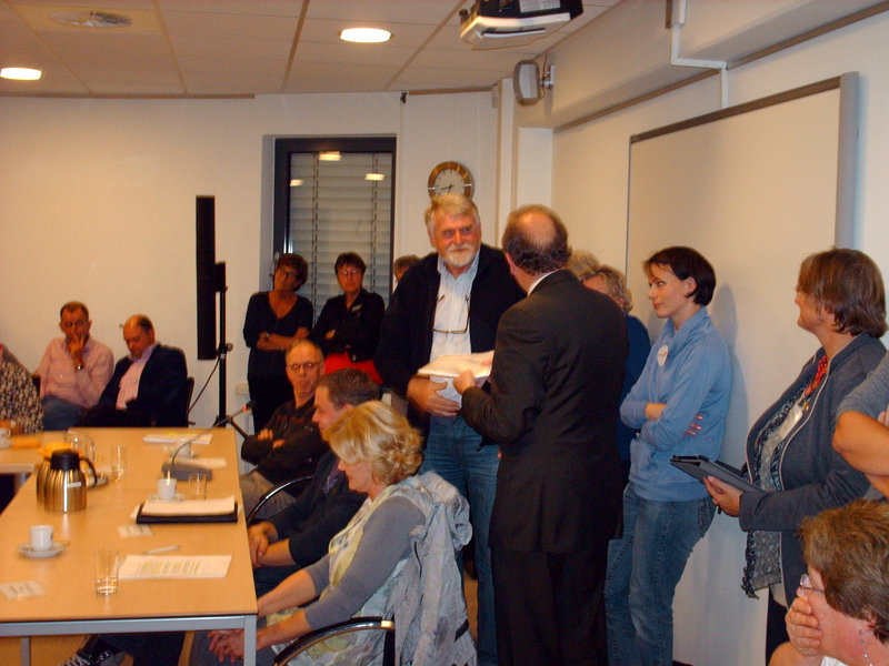 Dhr. van der Stoep sprak in als bestuurslid van de “bieb”, maar ook als burger van onze gemeente, als lezer en namens de vrijwilligers. Hij constateerde dat zowel in de diverse verkiezingsprogramma’s als in het raadsprogramma niets staat over het sluiten van bibliotheken. Hij vindt dan ook onacceptabel dat er in 4 jaar jaarlijks 20% moet worden bezuinigd. Dat is in totaal 80% en dat is absoluut onmogelijk. Het is een verarming voor de gehele gemeente als dit gebeurt, daarom zijn er afgelopen donderdag en vrijdag acties gestart en Dhr. van der Stoep kon de eerste 1520 handtekeningen aan burgemeester Jansen overhandigen.